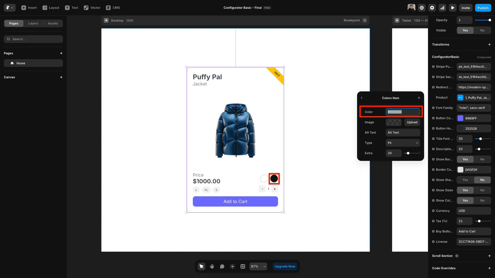 Don’t worry about tax compliance — Framer Configurator helps you set this up. You’ll be able to choose the percentage (%) of the total price that should be taxed.